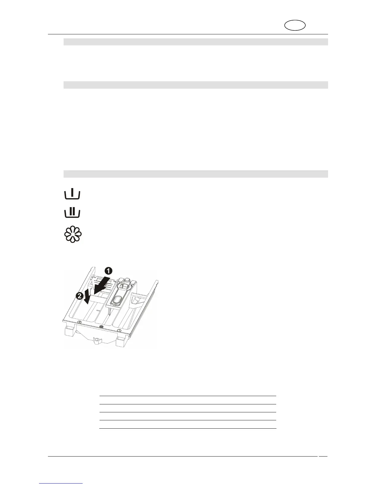 The main wash detergent compartment has a tang allowing the use of liquid detergent. To insert it, pull it towards