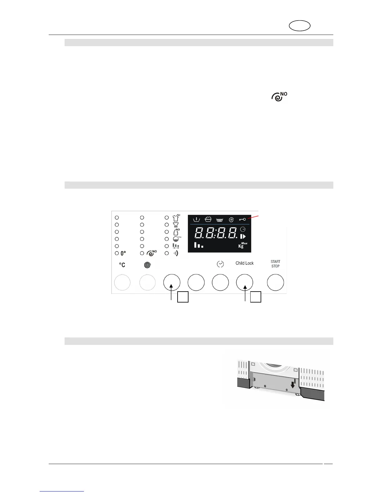 2. To activate the Child Lock Function, press the Child Lock (1) button and hold it down. Also press the