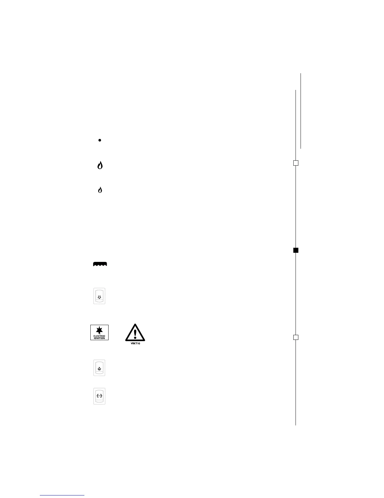 Symbolene nedenfor viser justeringen av brenneren som tilsvarer bryterens posisjon.