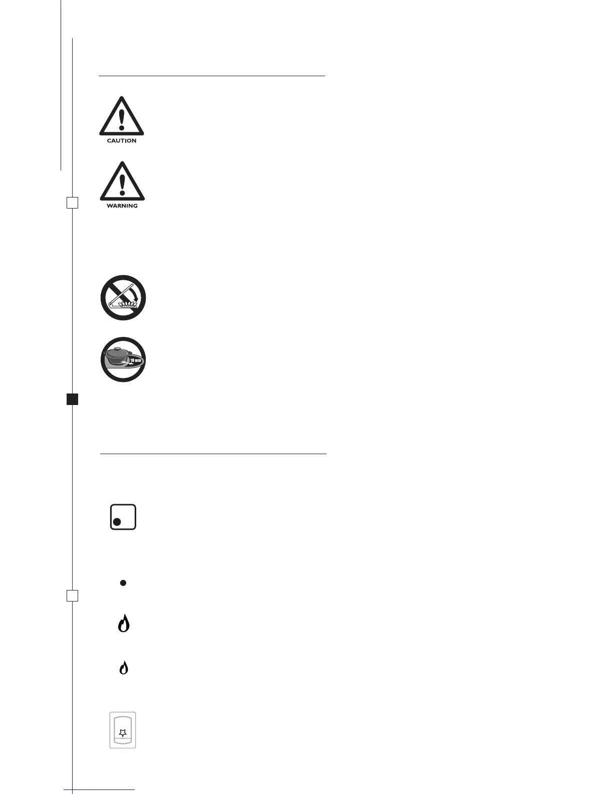 The following symbols indicate the burner regulation corresponding to the knob position.