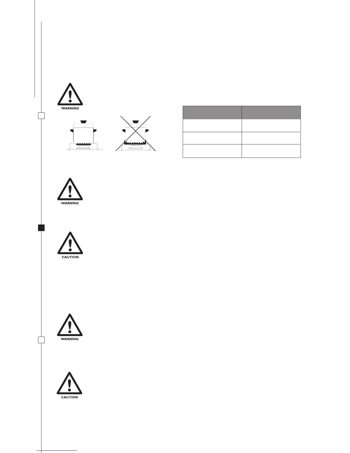 THE FLAME MUST NEVER EXTEND BEYOND THE EDGE OF THE PAN. CENTRE THE
