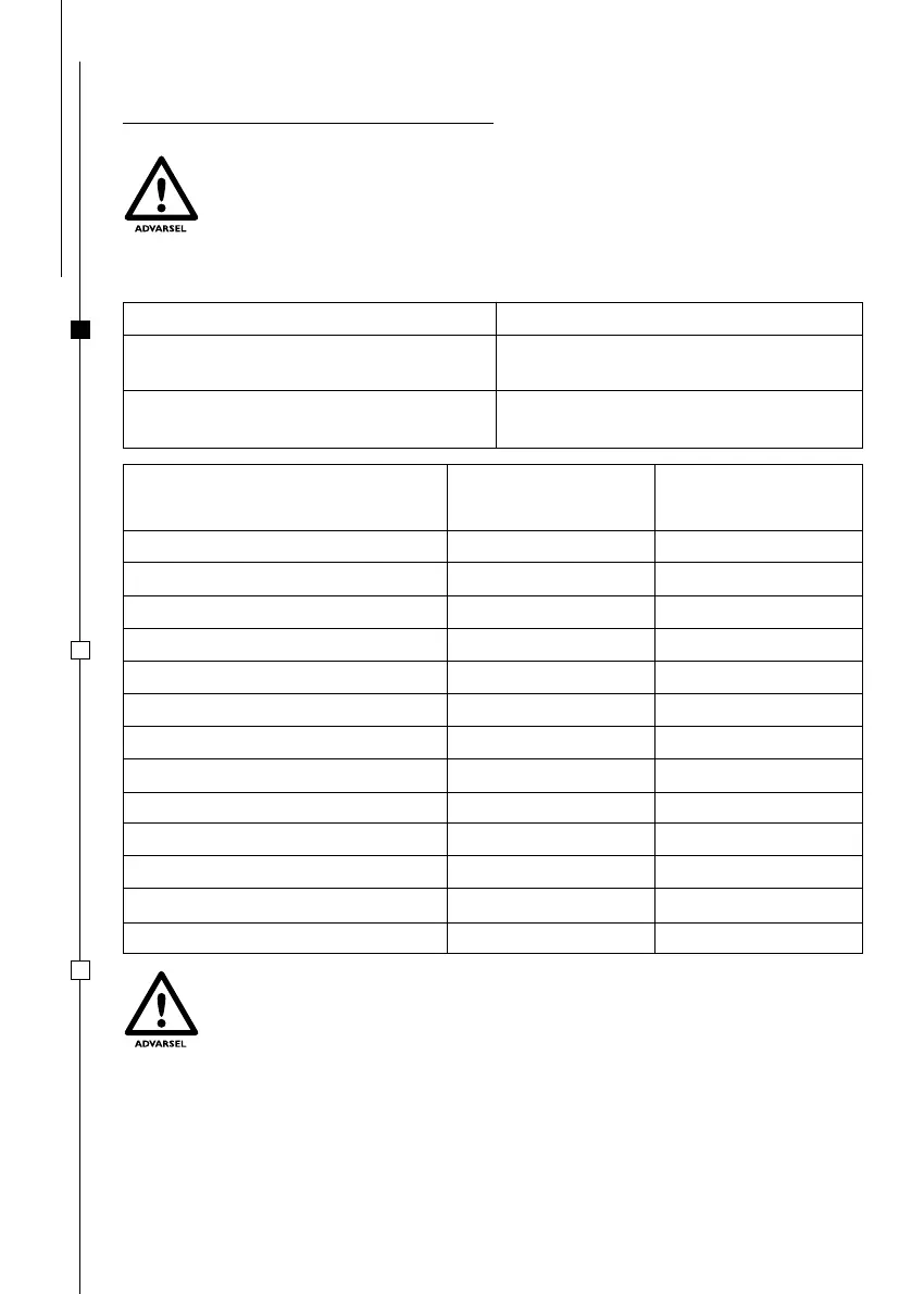 MÅ VÆRE I OVERENSSTEMMELSE MED KATEGORIENE SOM ER ANGITT I TABELLEN