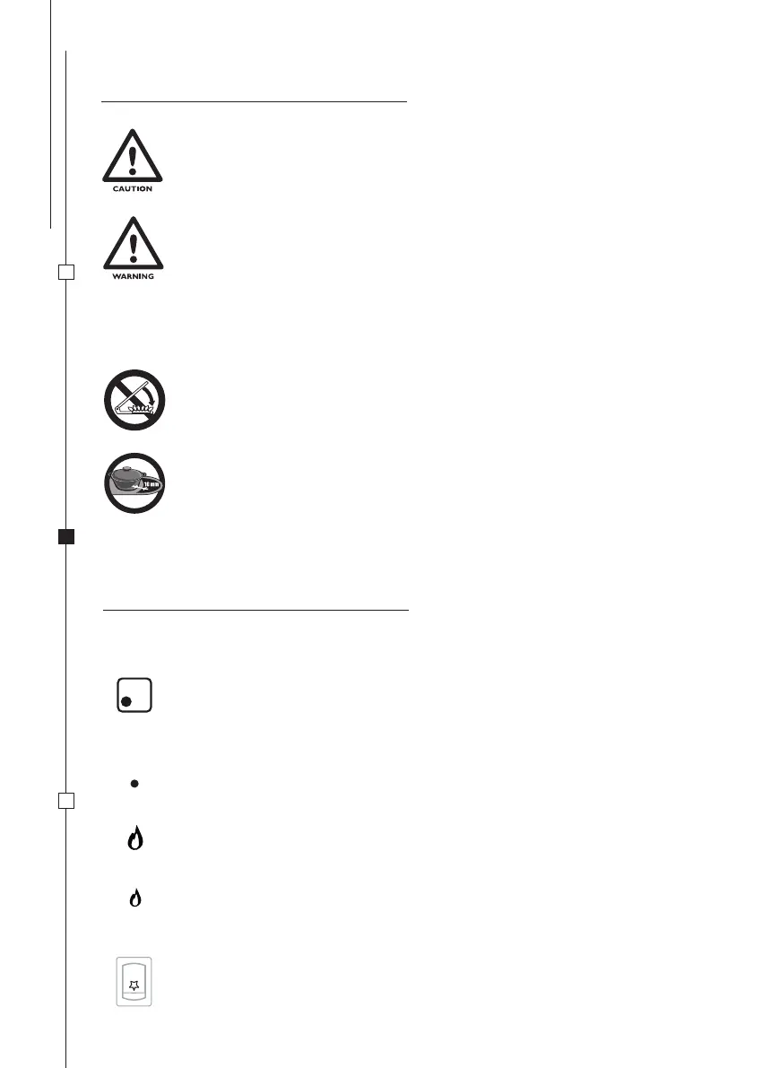 The following symbols indicate the burner regulation corresponding to the knob position.