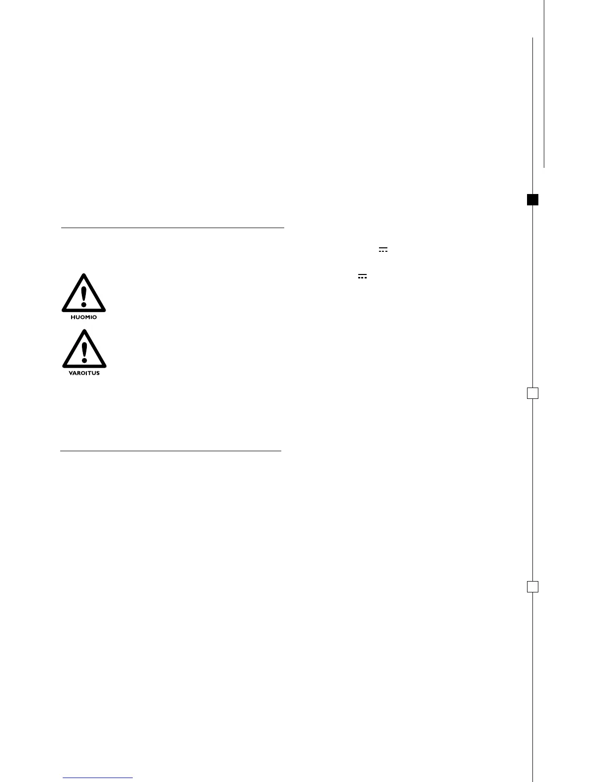 ÄLÄ LIITÄ LAITETTA MISSÄÄN TAPAUKSESSA 230 V~ : N VERKKOVIRTAAN!