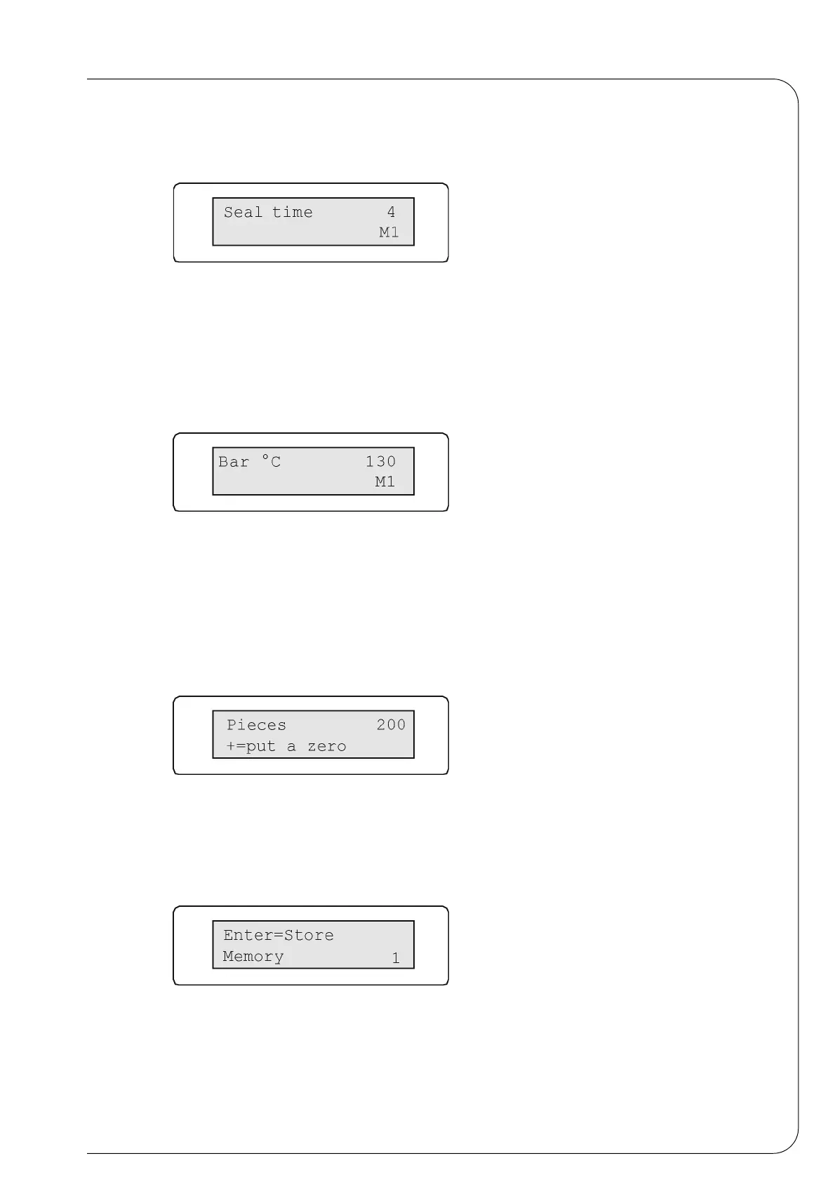 Menu that sets the sealing temperature (value 50°C-160°C; increase 1°C).