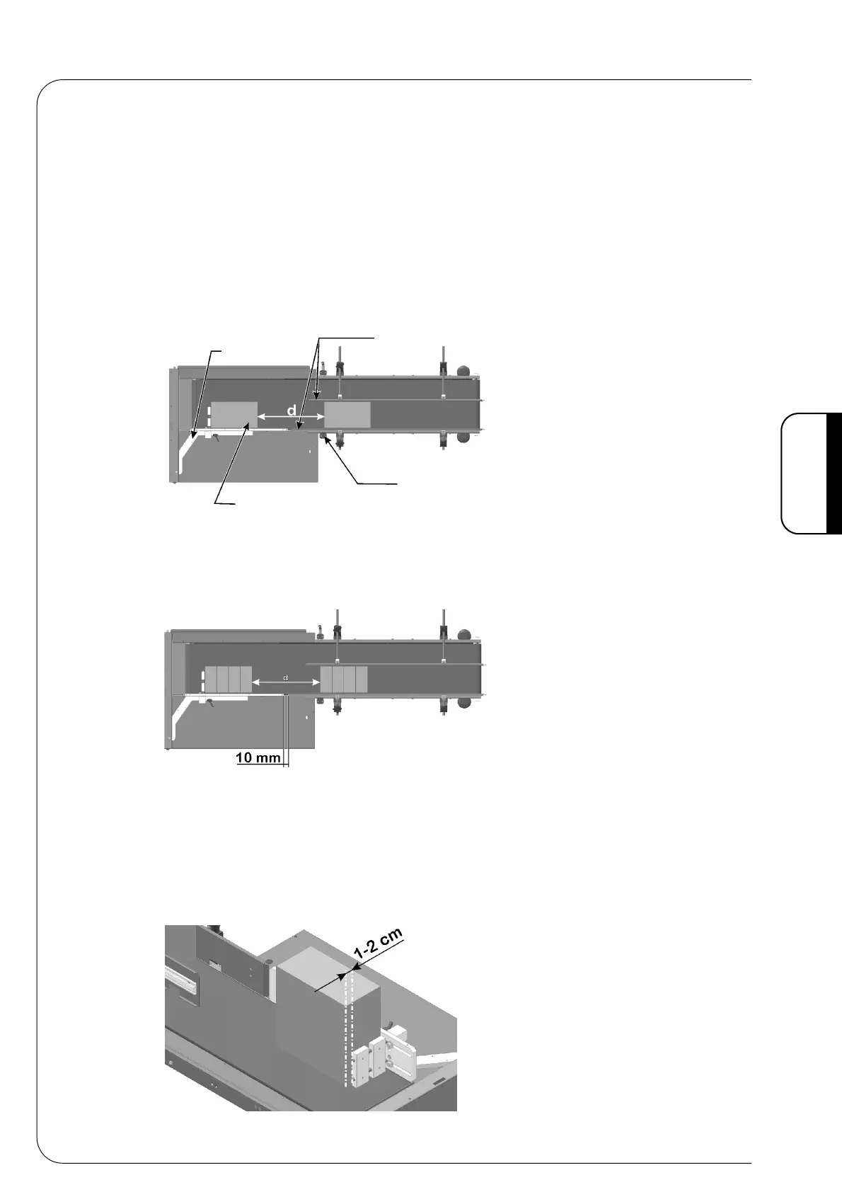 In both cases, it is necessary to keep a specific distance "d" between the end of the product to