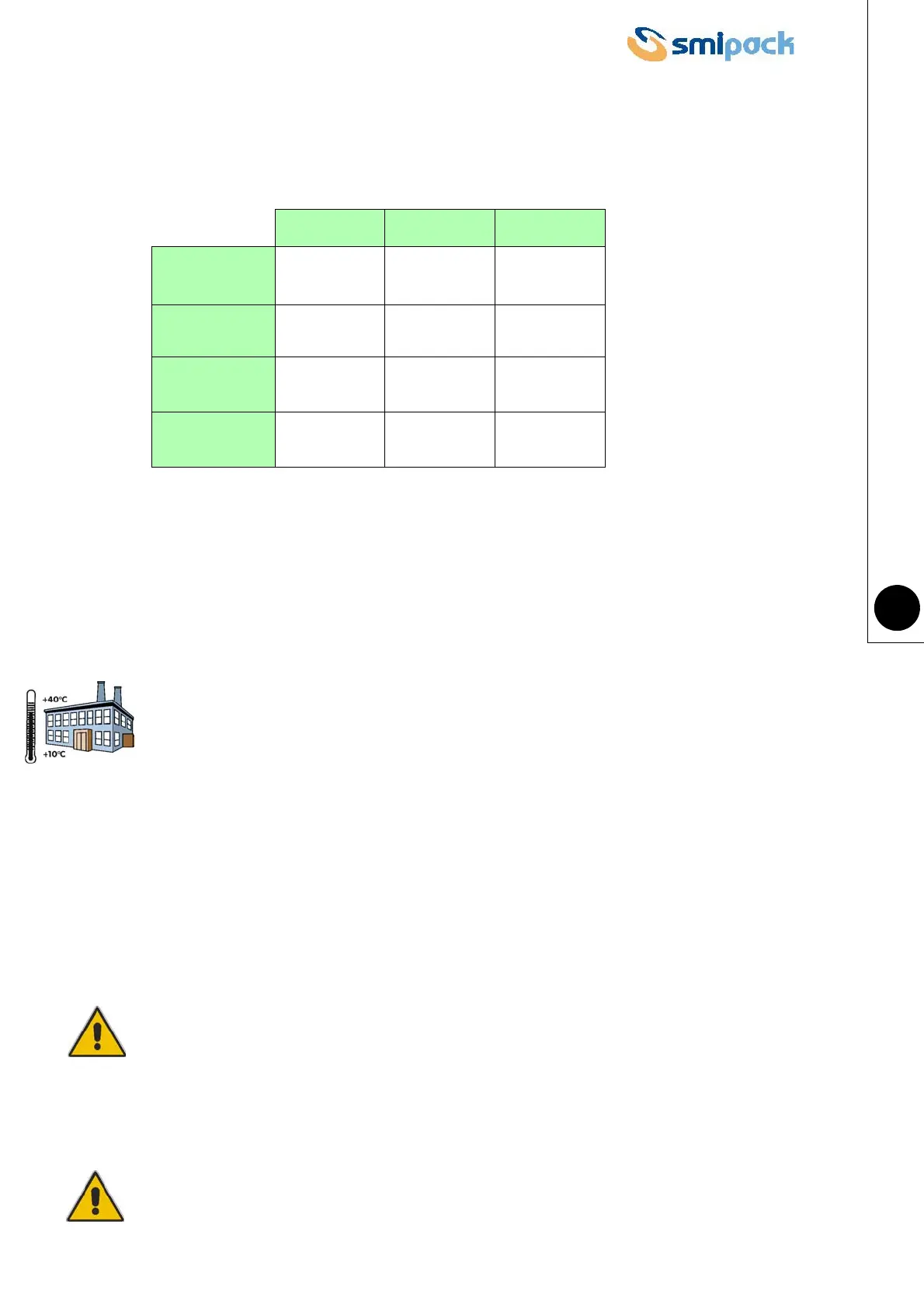 sure that it is level. Operating temperatures ranging from +10°C to +40°C are recommended,