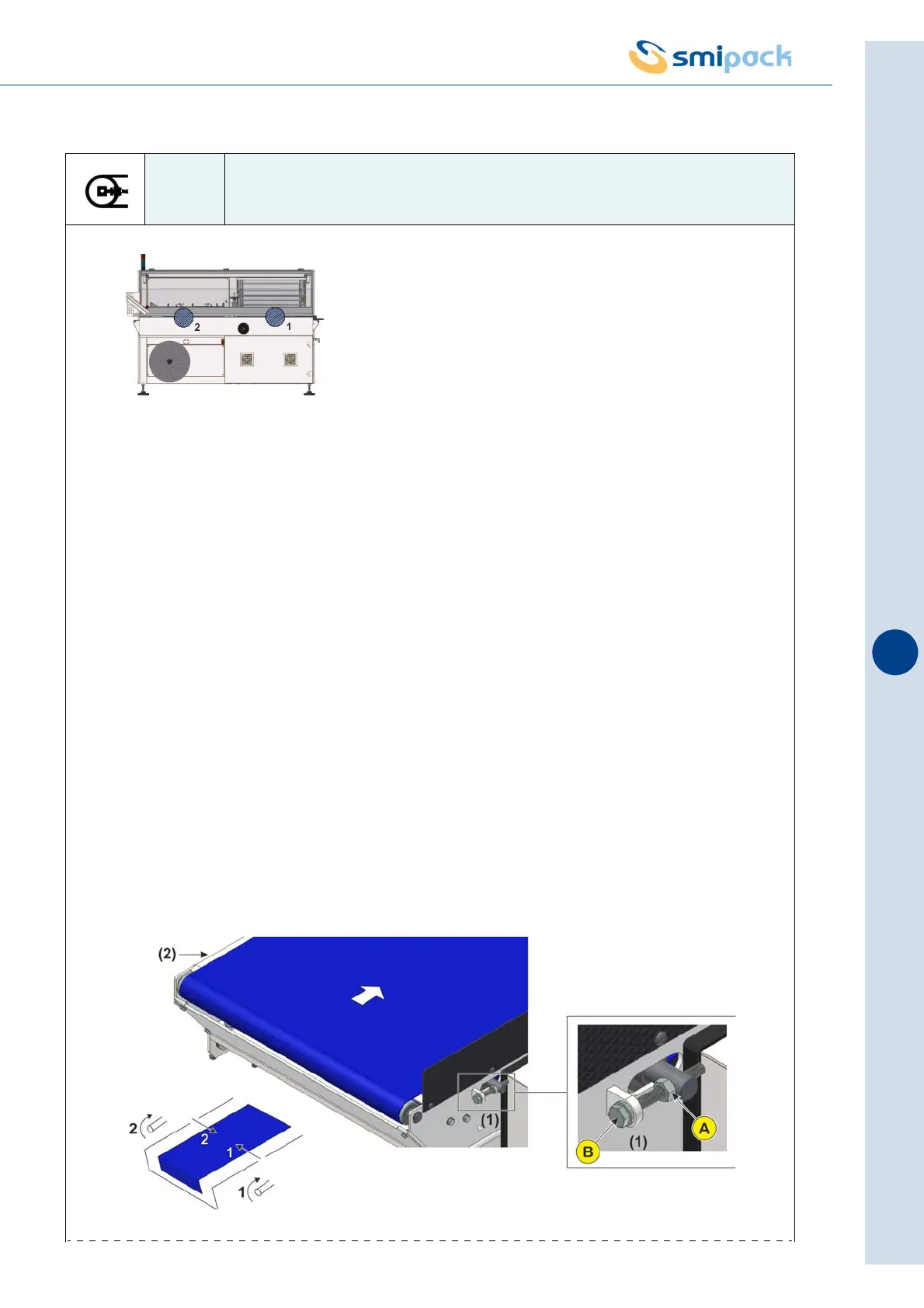 mat as shown in figure. Conversely unscrew to move the conveyor mat to the opposite side.