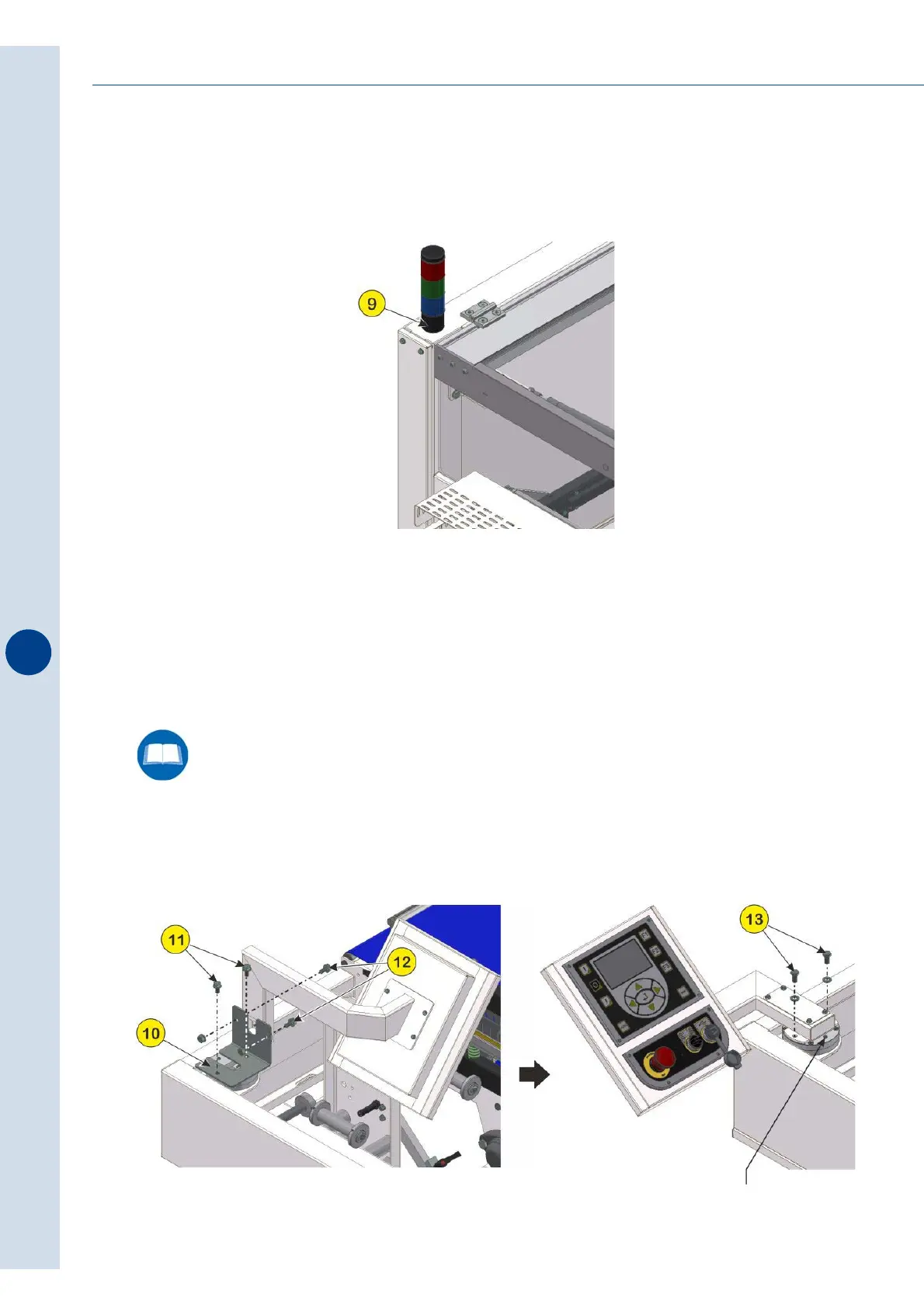 of the machine. To release the arm and reposition the operator panel correctly follow the