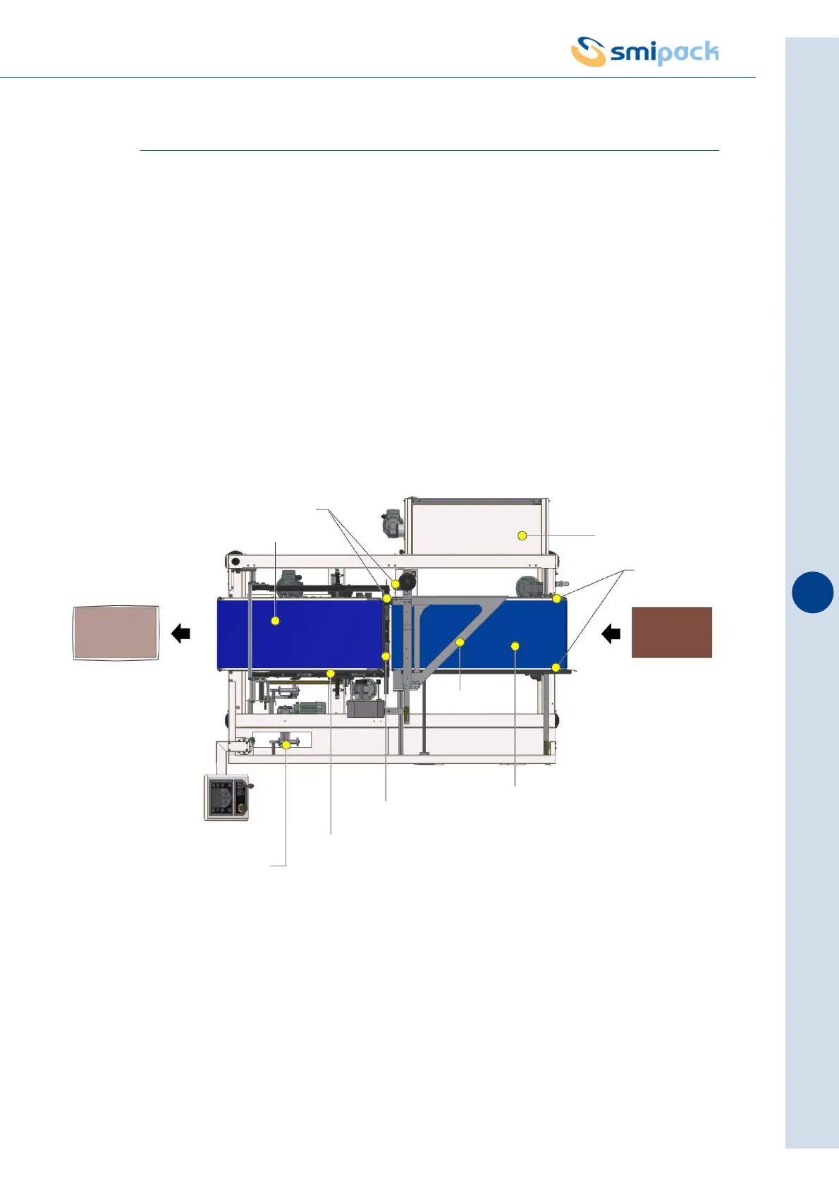 • The pack is transported by a second conveyor belt towards the outfeed of the machine; if