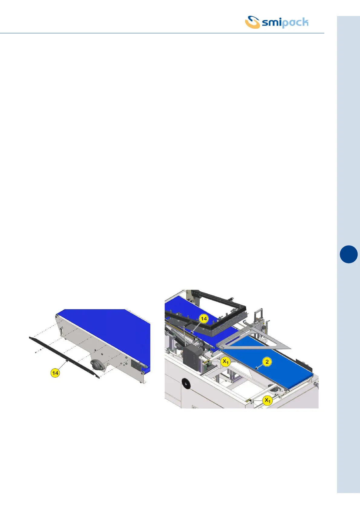 • remove the sideboard (14) on the machine's outfeed conveyor belt so the product can be