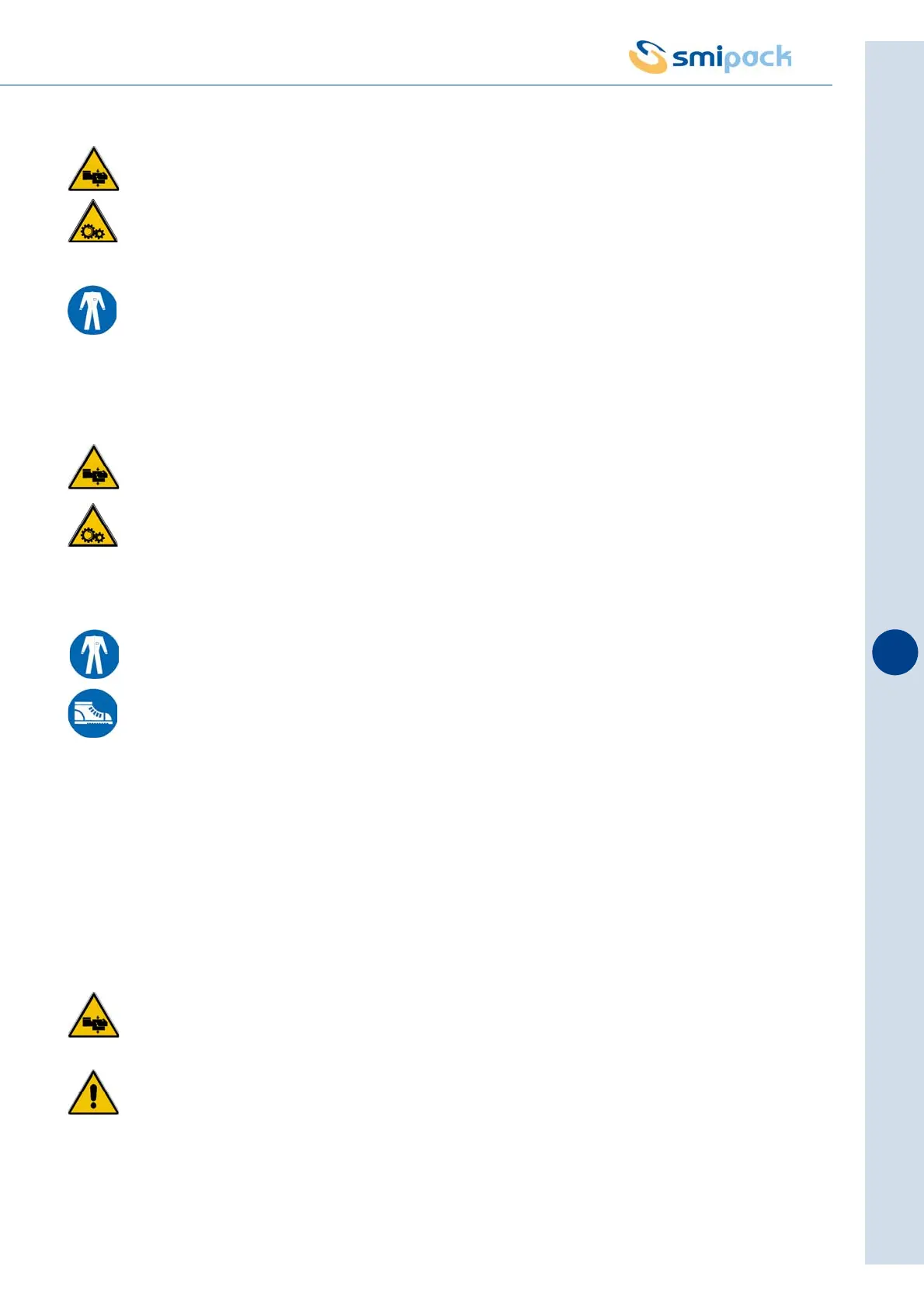 The operator must wear suitable clothes that cannot remain entangled in moving mechanical