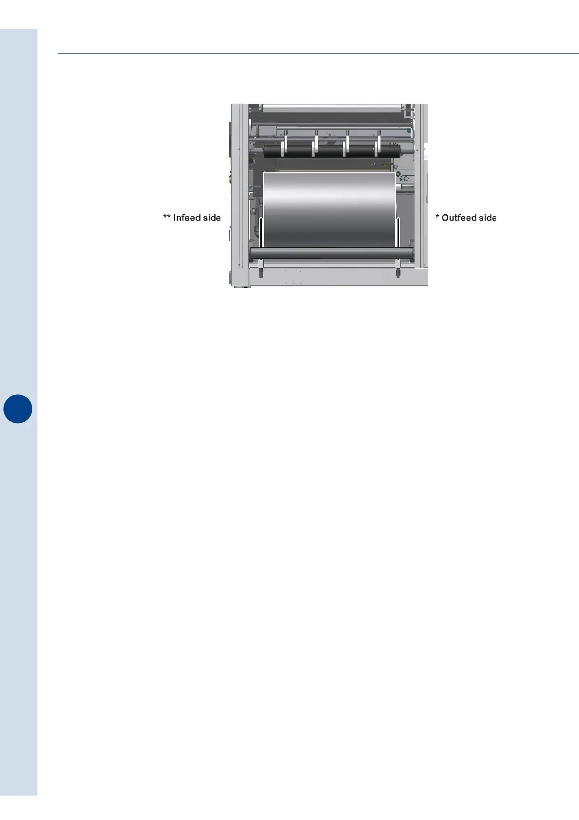 the film reel is suitable and, if needed, move the reel towards the infeed side (**) of the product.