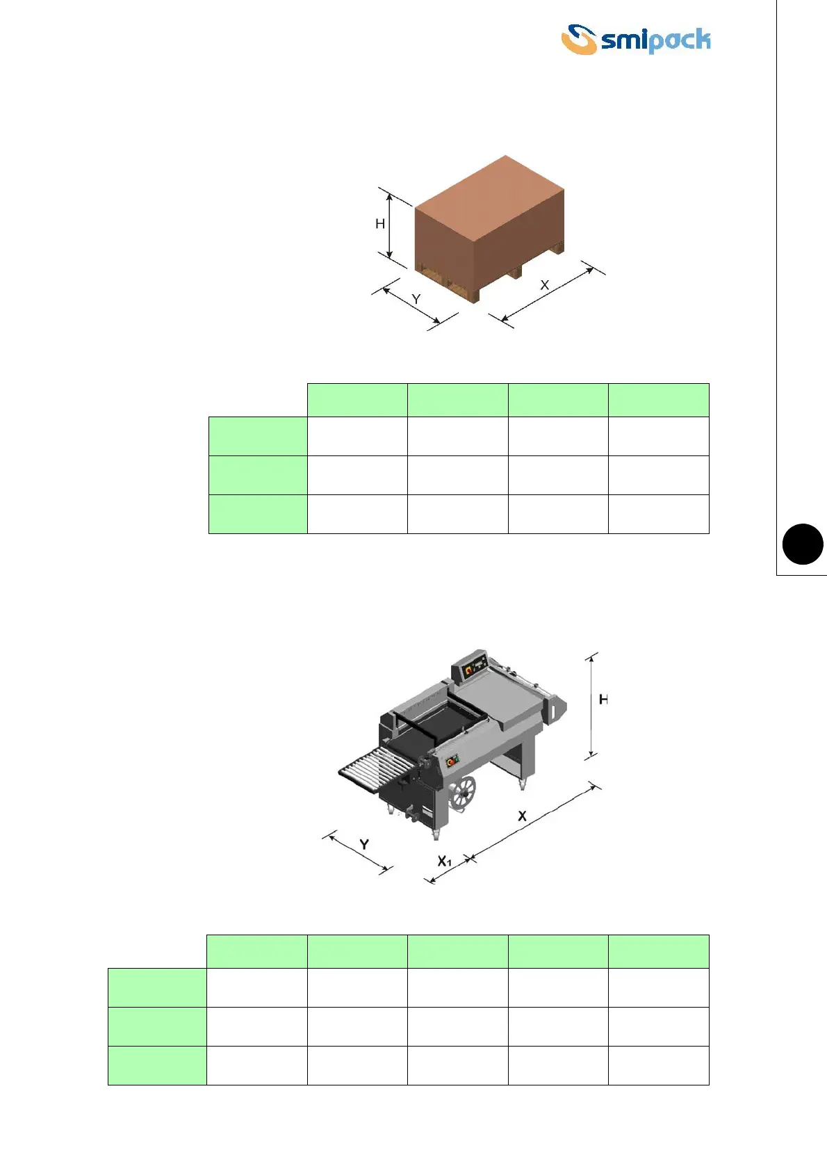 Smipack FP870A - Weight and Dimensions of Packed Machine; Machine Weight and Dimensions