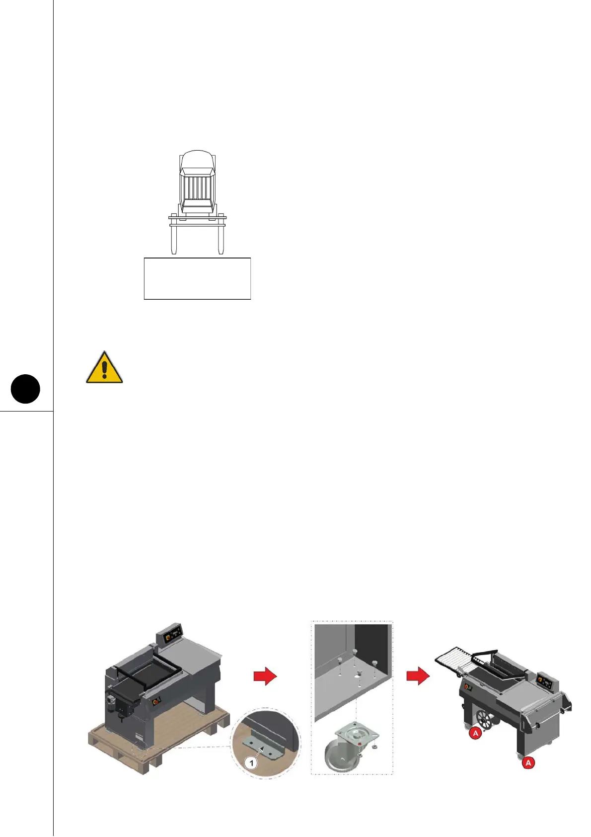 • Keeping up the machine using a fork-lift truck mount the wheels as shown in the figure.