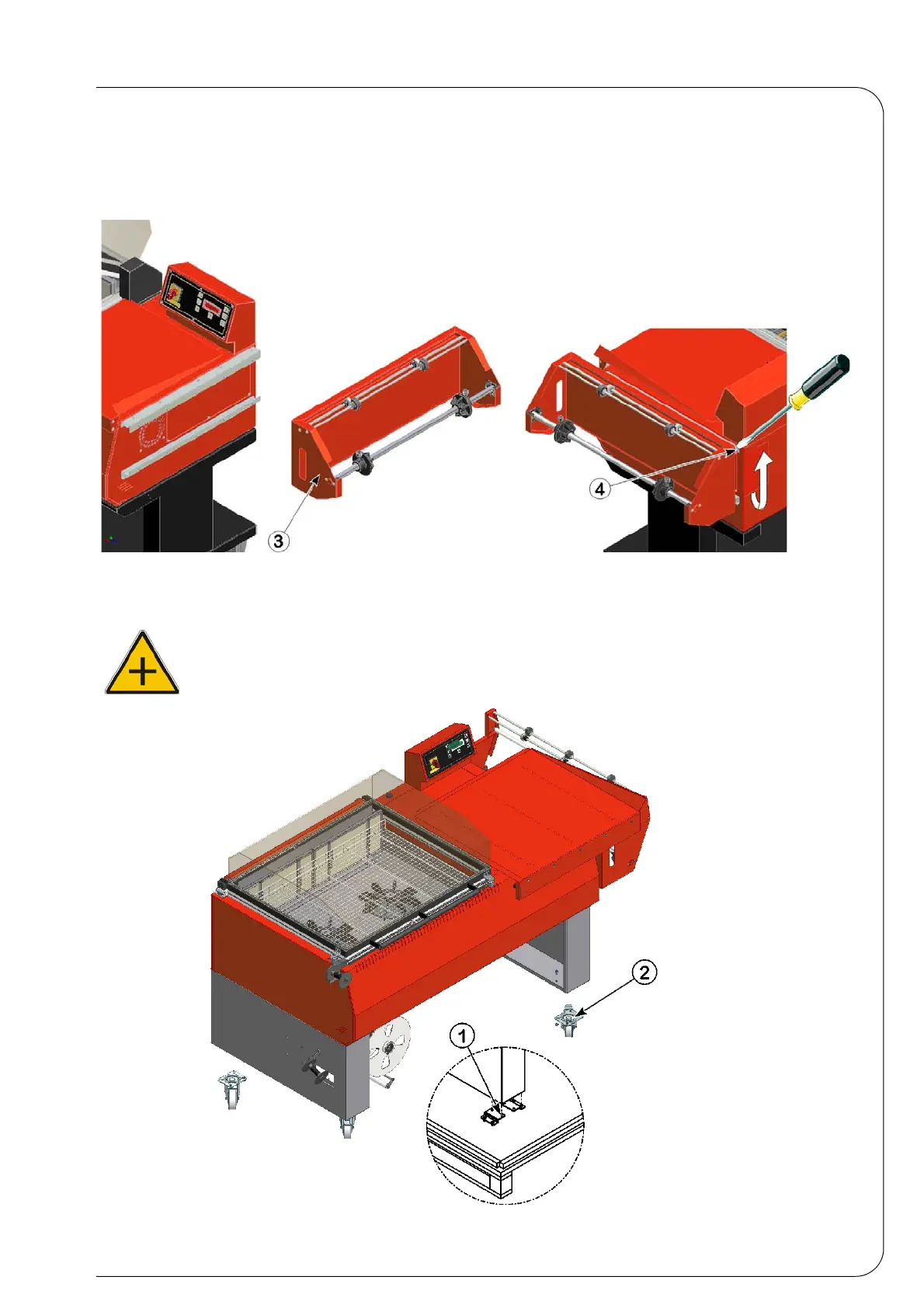 Unscrew the bolts from the pallet, lift the machine by means of a lift, remove the plates 1, then