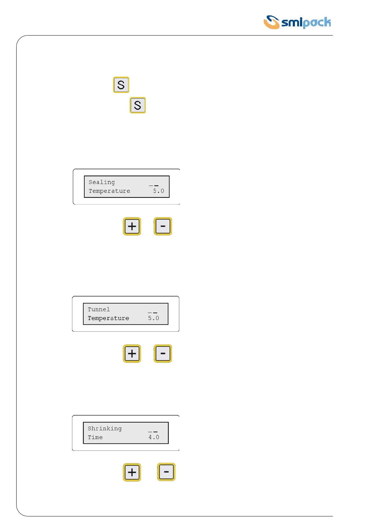 Menu to adjust the sealing temperature (value 0-10)