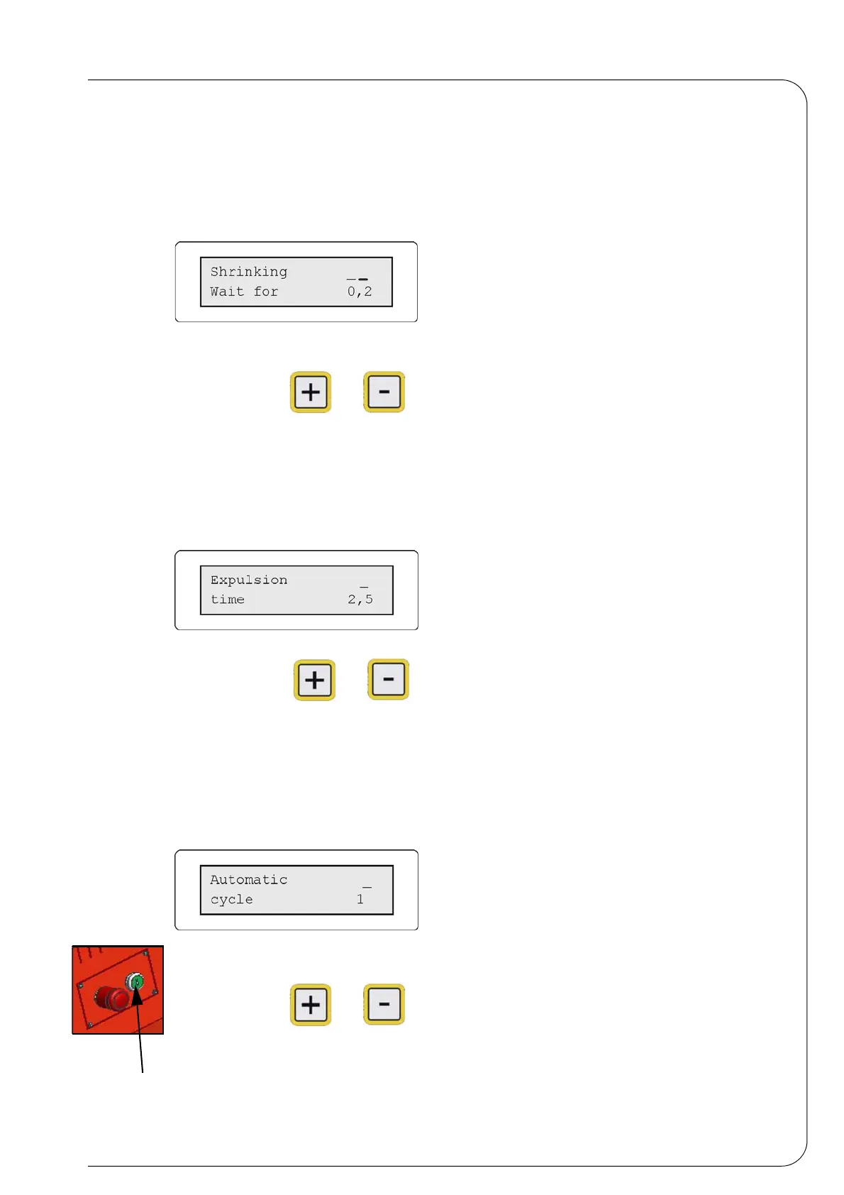 Menu to adjust the packaged product ejection time. (value 0-10)