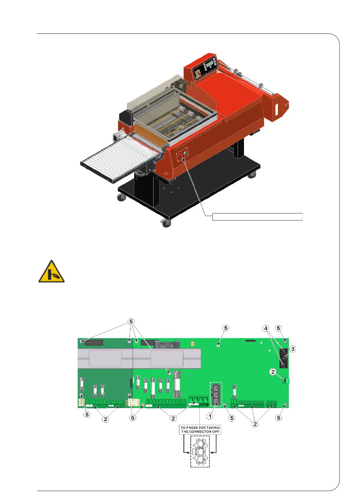 • Remove the connector 1 by pressing by the sides, as indicated on the label.