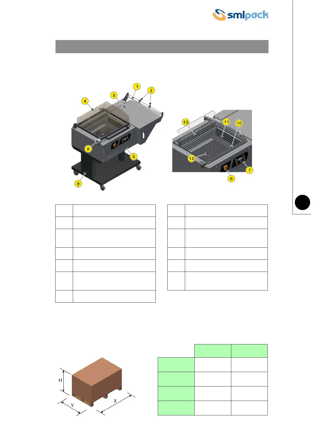 Smipack SL55 - Machine Installation; Description of Machine Components; Weight and Dimensions of Packed Machine