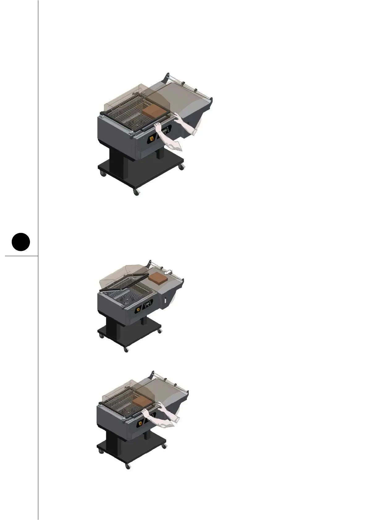 Help to separate the film with your right hand to keep it from sticking to the sealing blade when