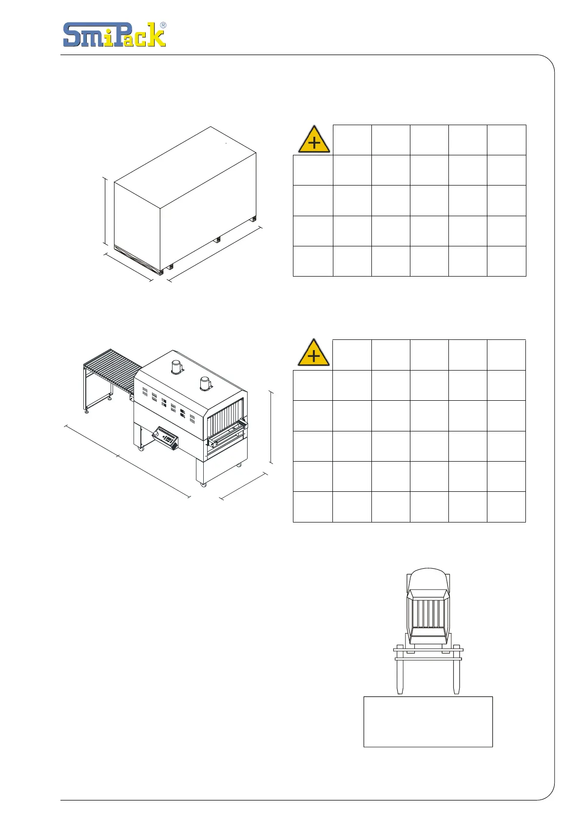 Smipack T450 - Weight and Dimensions of the Packed Tunnel; Weight and Dimensions of the Tunnel; Transport and Unpacking