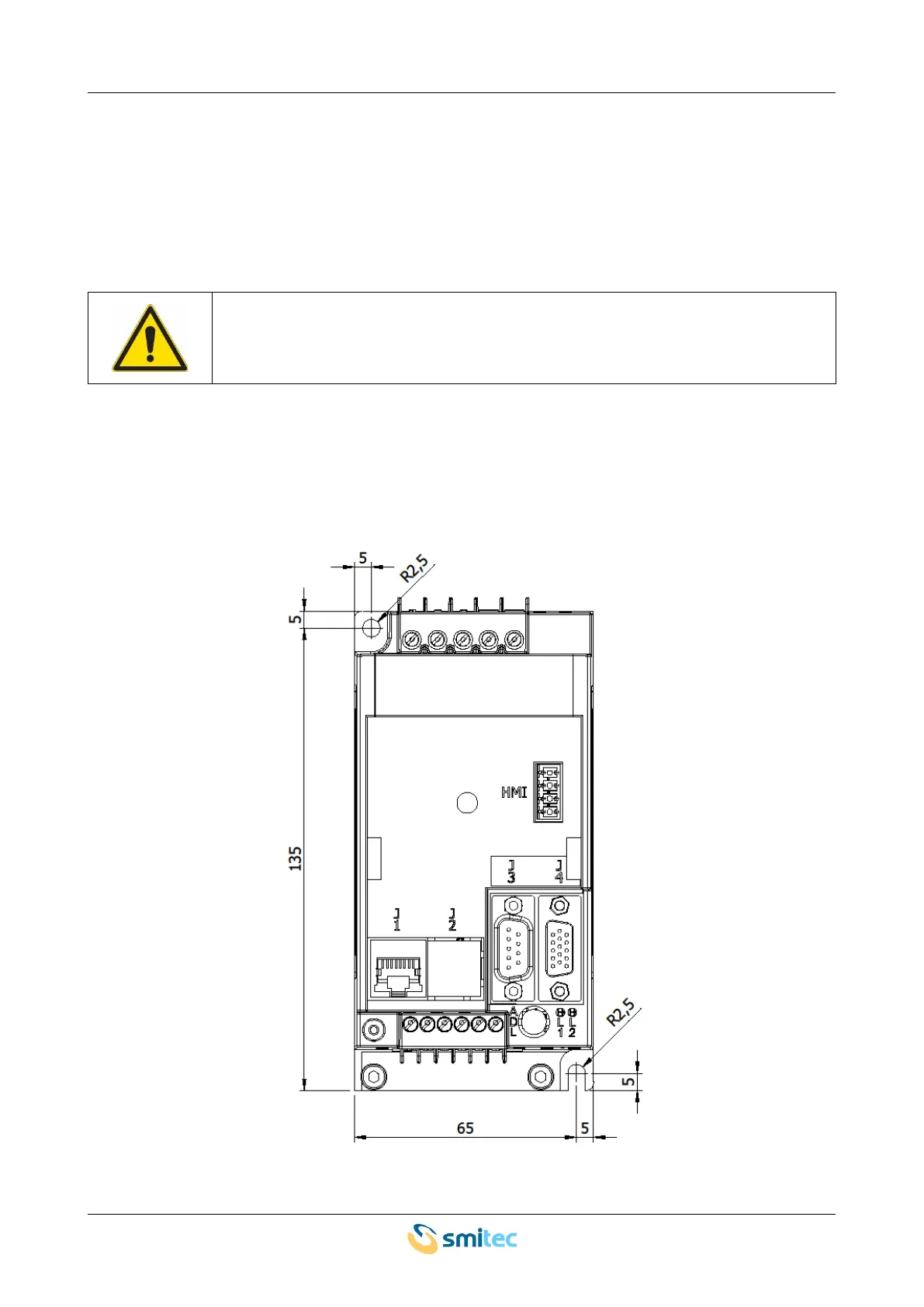 The device must be duly tightened to the metal wall of the electrical panel, by means of two screws M5 x 0.8