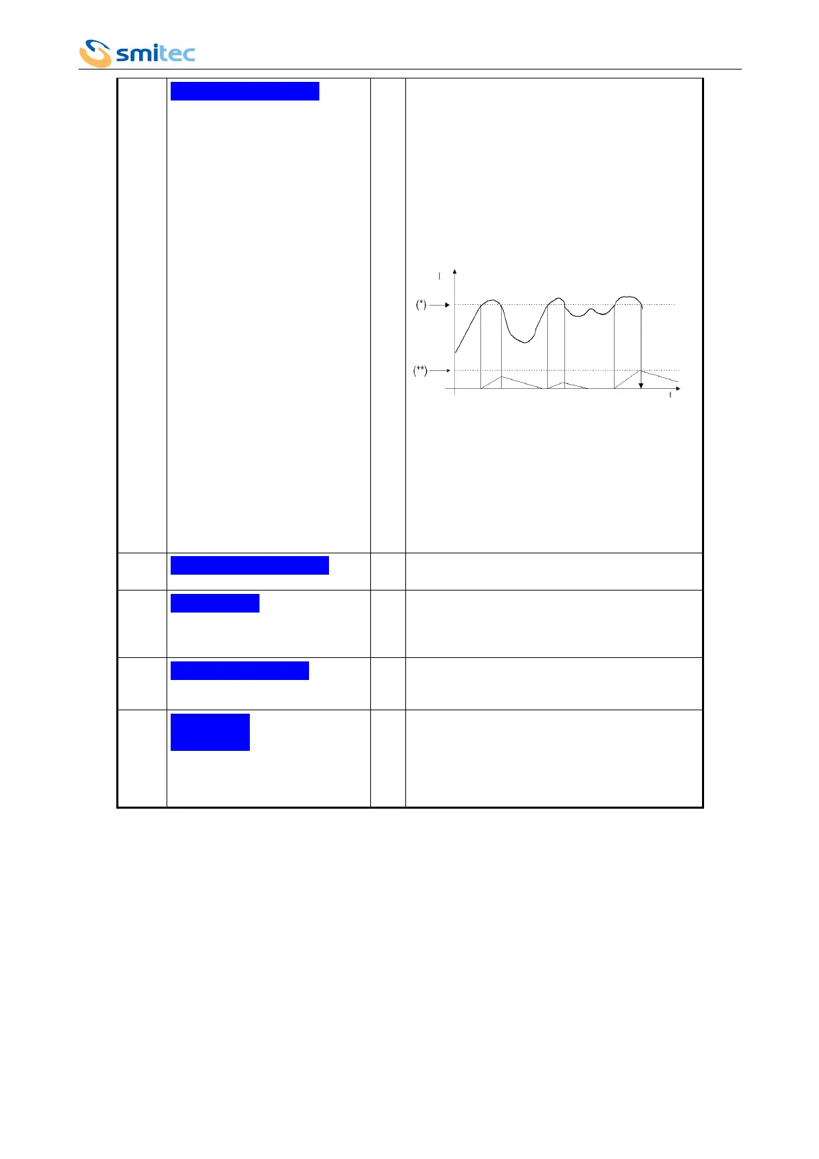 In this menu, the rms limit current (*) can be set up