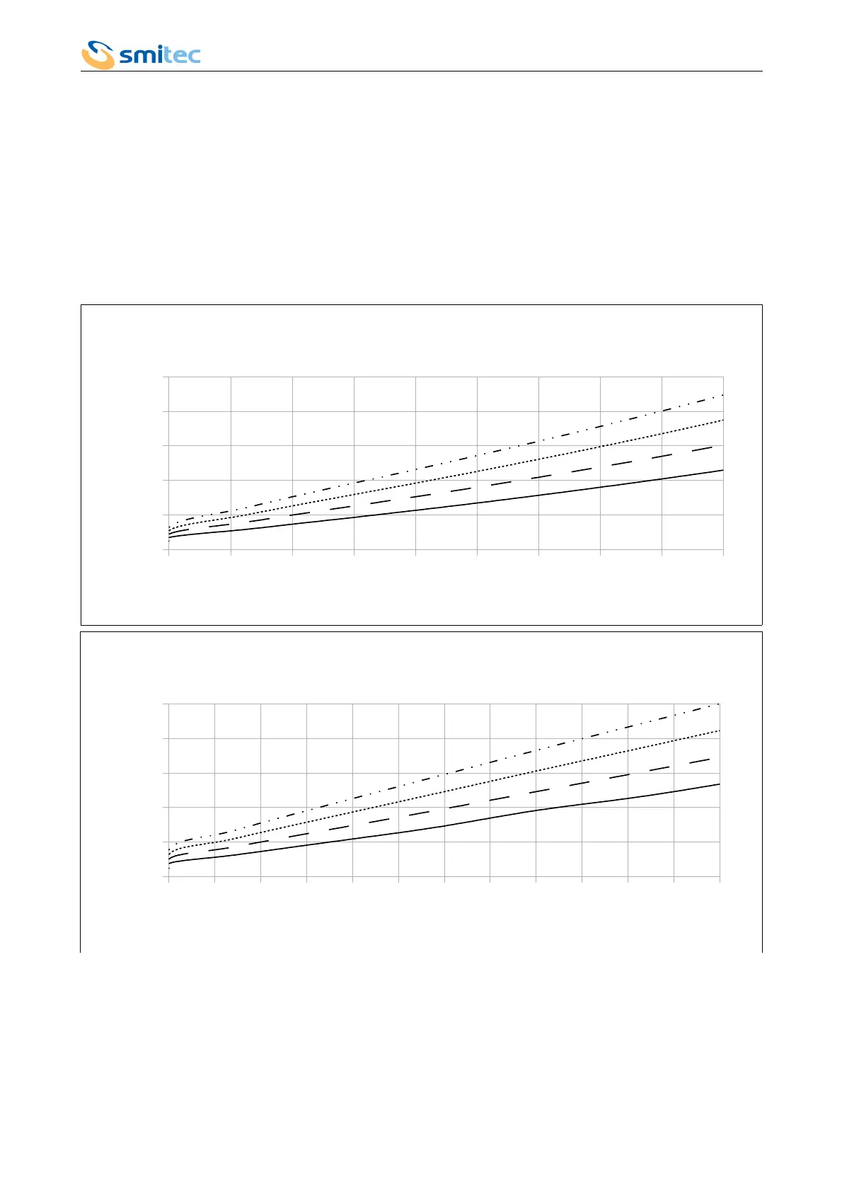 The below graphics show the thermal dissipation, depending on the efficient output current. The four curves represent
