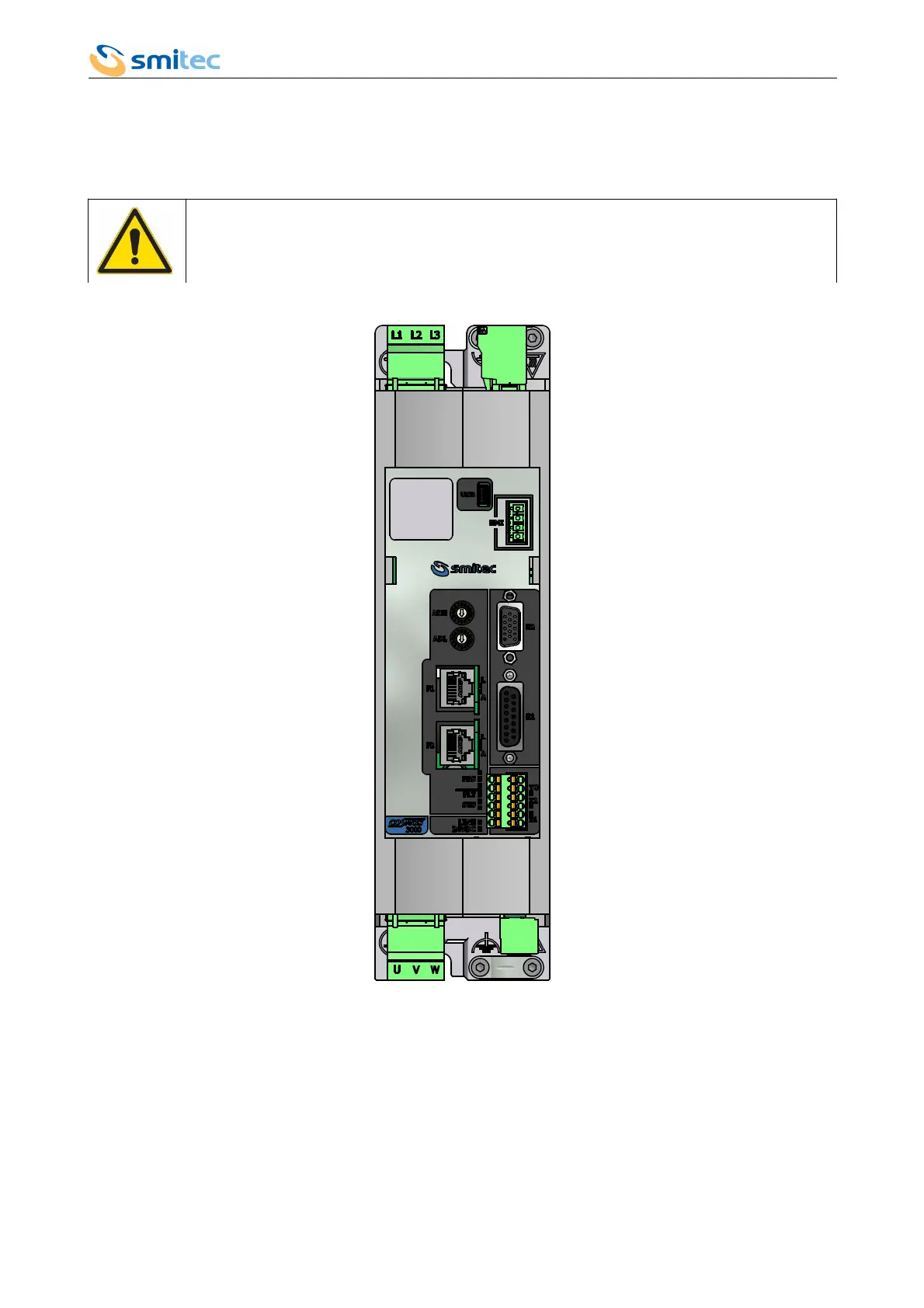 In order to avoid damaging the driver, all connections, except USB and HMI, must be