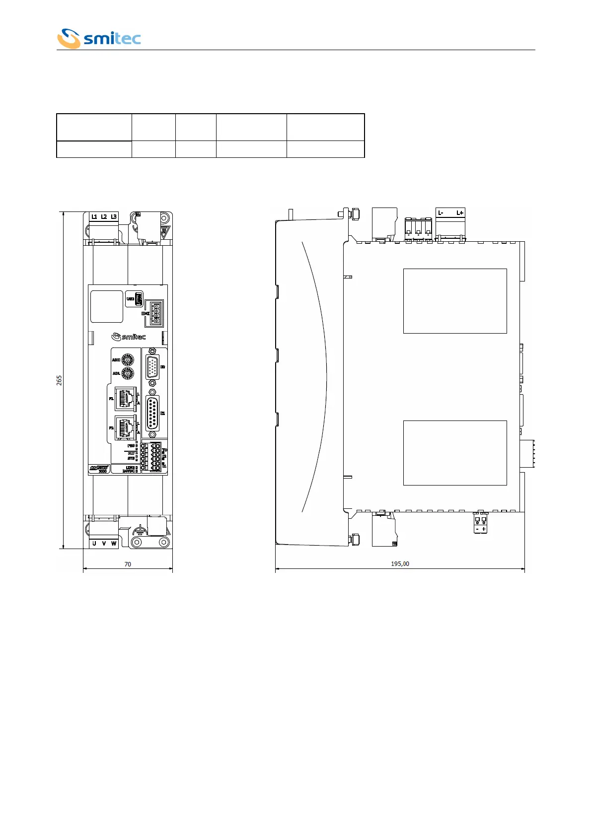 Smitec Cosmos 3502DB - Physical Specifications; Weight; Size of COSMOS Type 315 X; 325 X