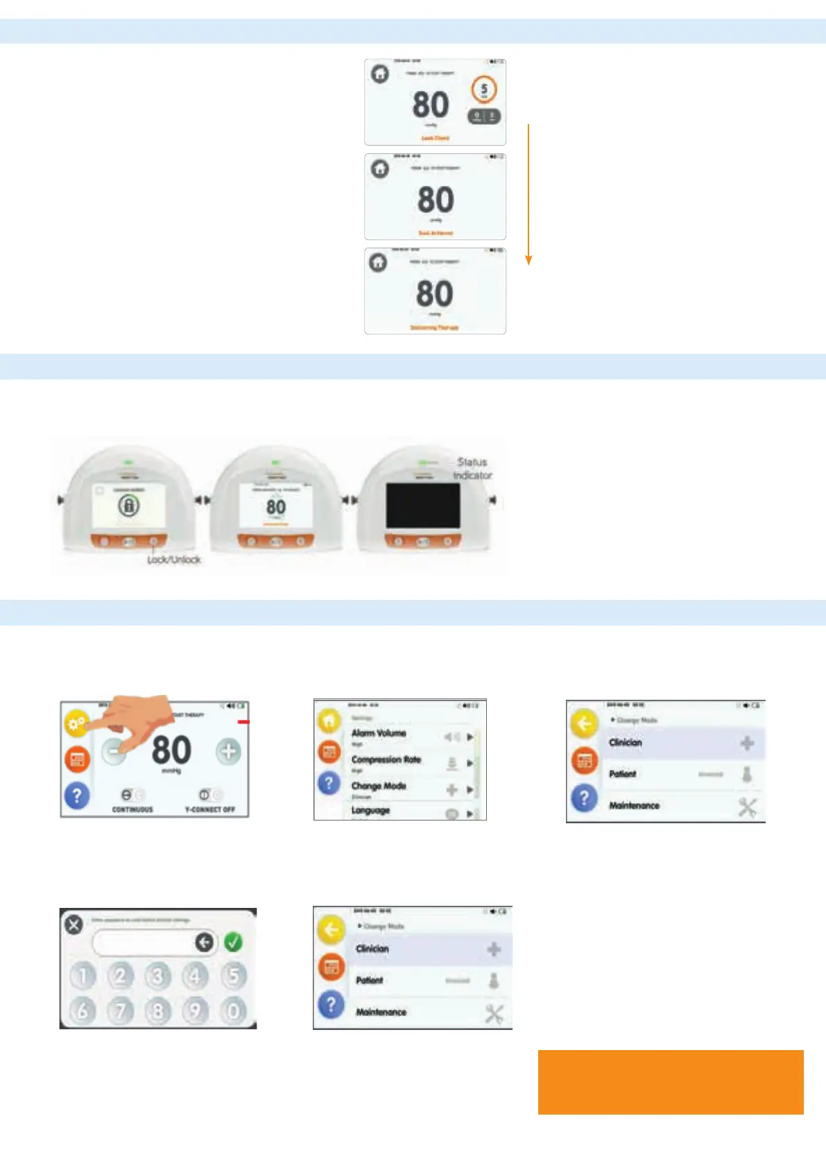 The Lock function locks the touchscreen and Start/Pause therapy icon – Power icon is not locked. The