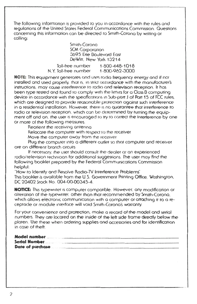 ceptacle or modul e interface will void Smith-Corona's warranty