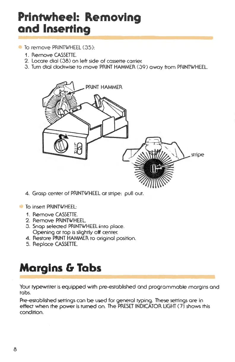 4. Grasp center of PRINTWHEEL or stripe: pull out .