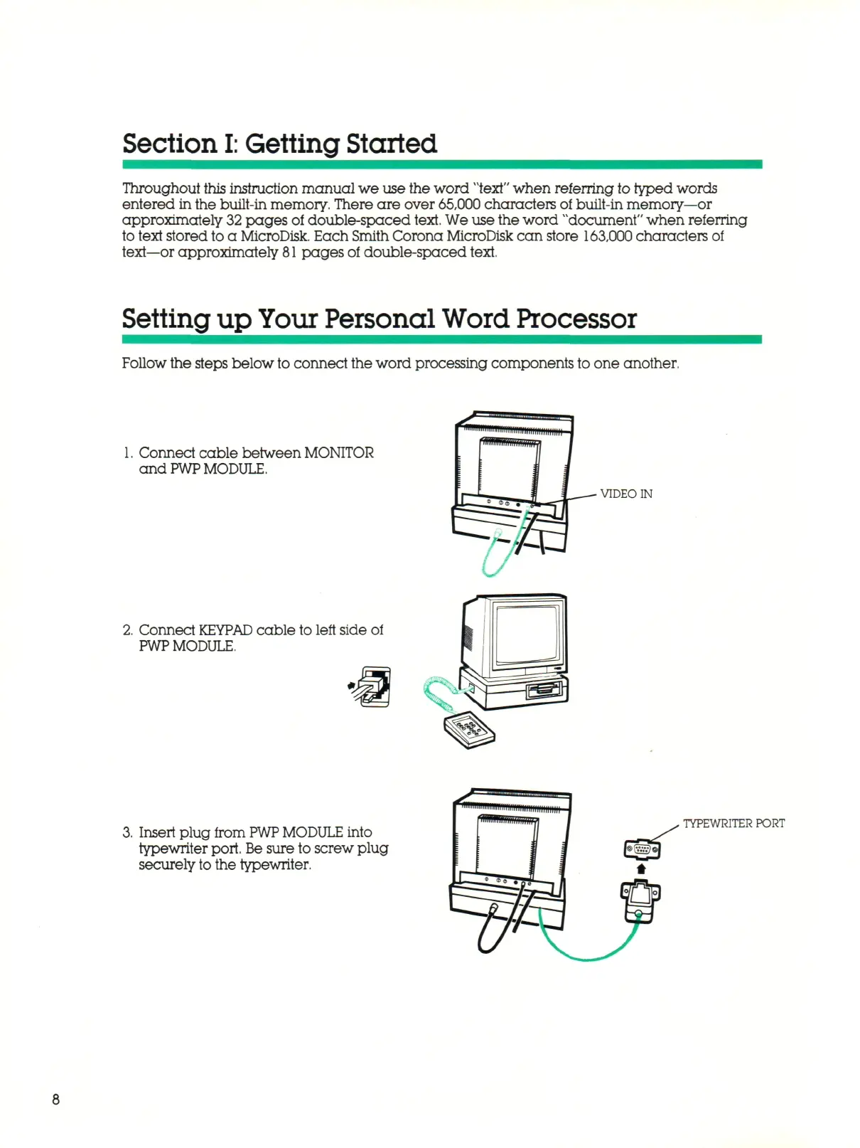 to text stored to a MicroDisk. Each Smith Corona MicroDisk can store 163,000 characte rs