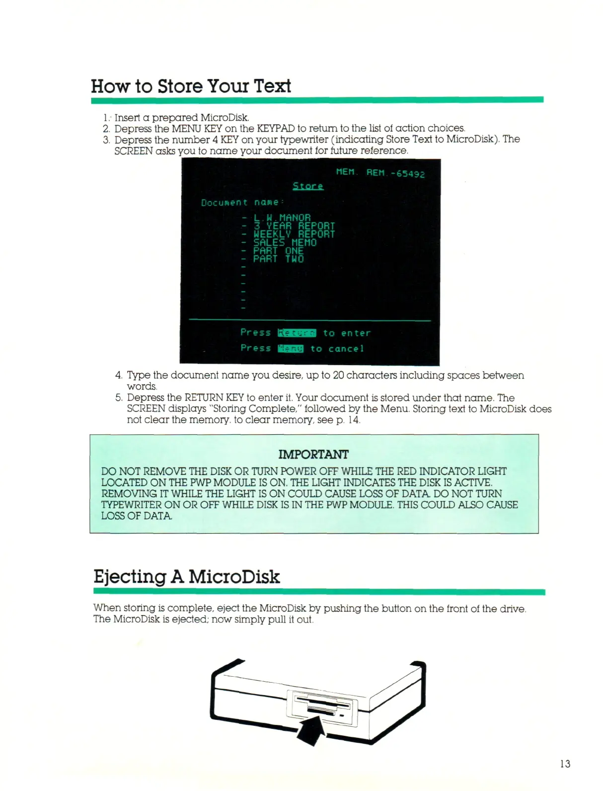 When storing is complete, eject the MicroDisk by pushing the button on the front of the drive.