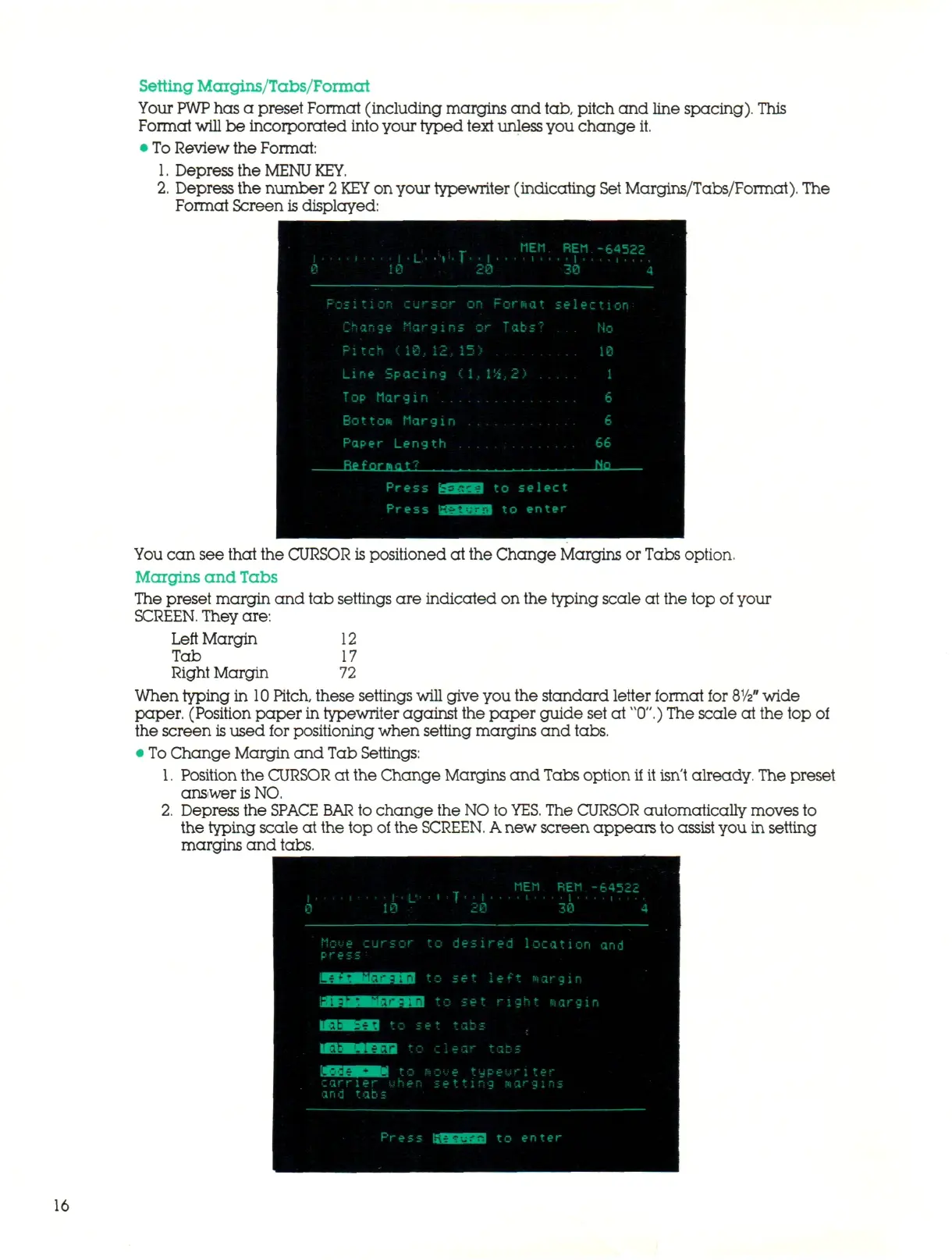 on your typewriter (indicating Set Margins/Tabs/Format). The