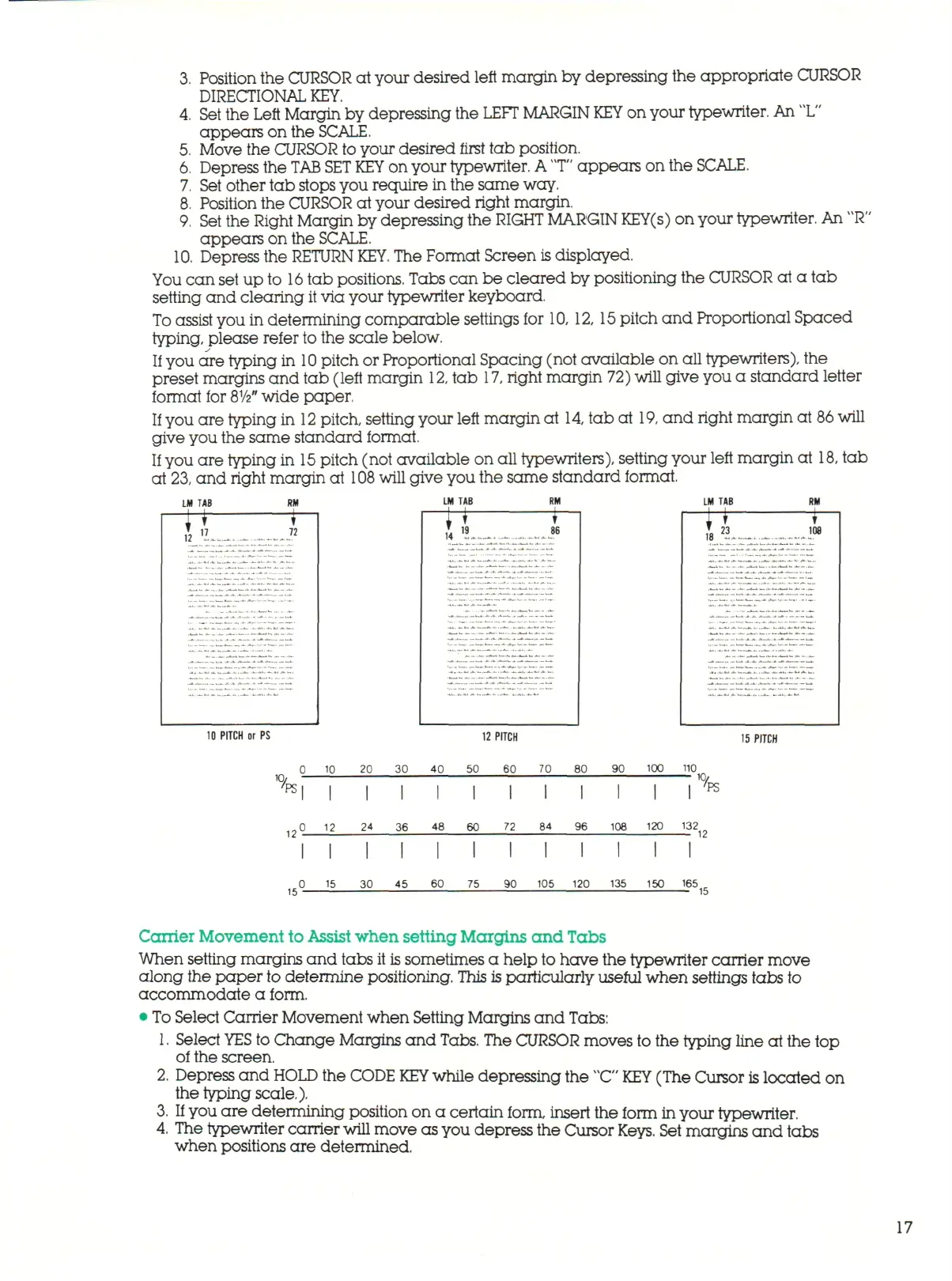 • To Select Carrier Movement when Setting Margins and Tabs: