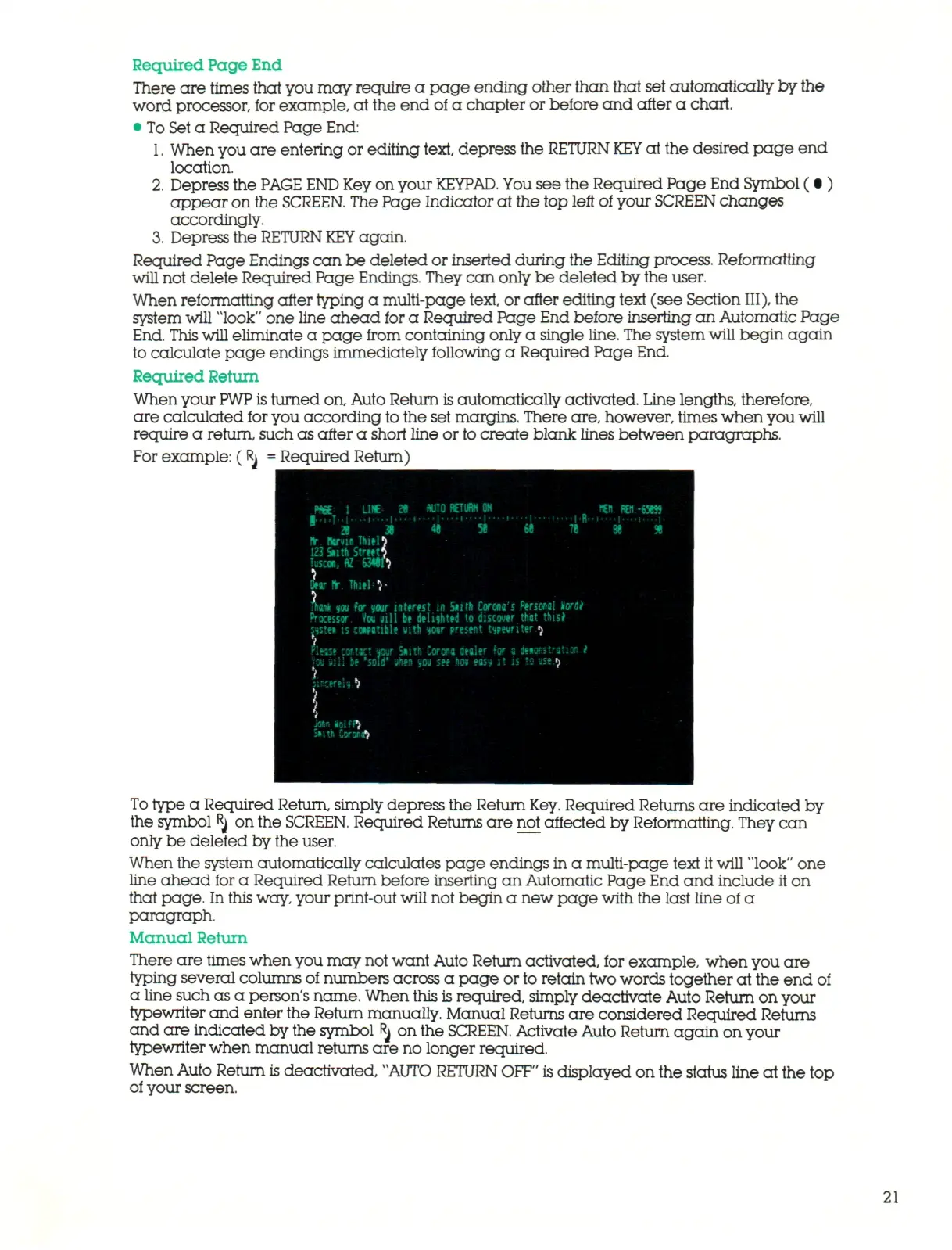 typewriter and enter the Return manually. Manual Returns ar e considered Required Returns
