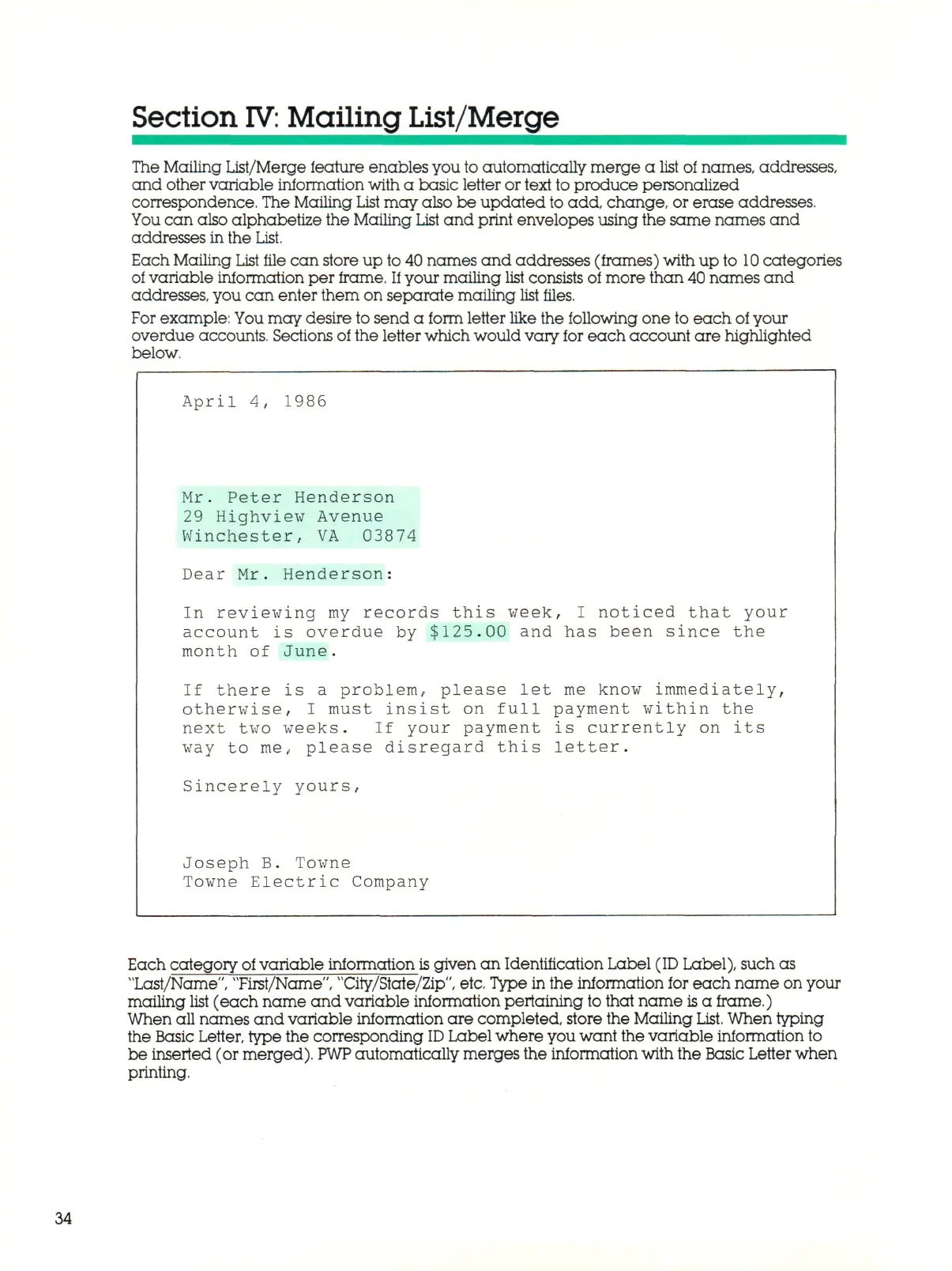 overdue accounts. Sections of the letter which would vary for each account are highlighted