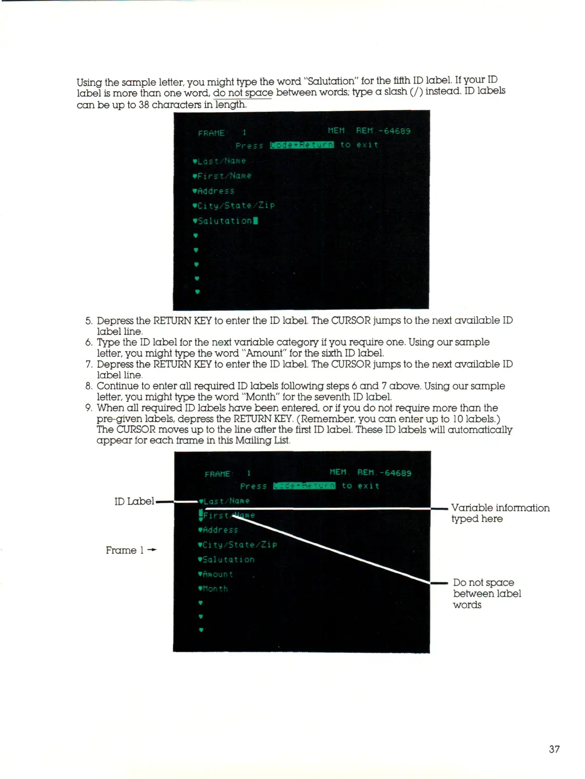 Using the sample letter, you might type the word "Salutation" for the fifth