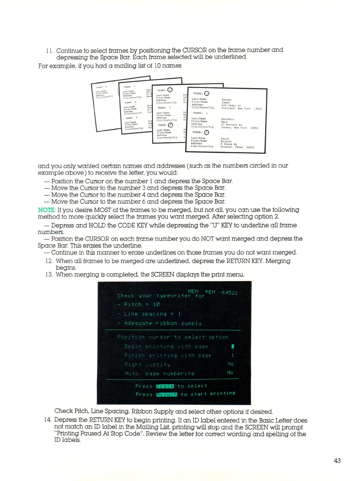Continue in this manner to erase underlines on those frames you do not want merged.