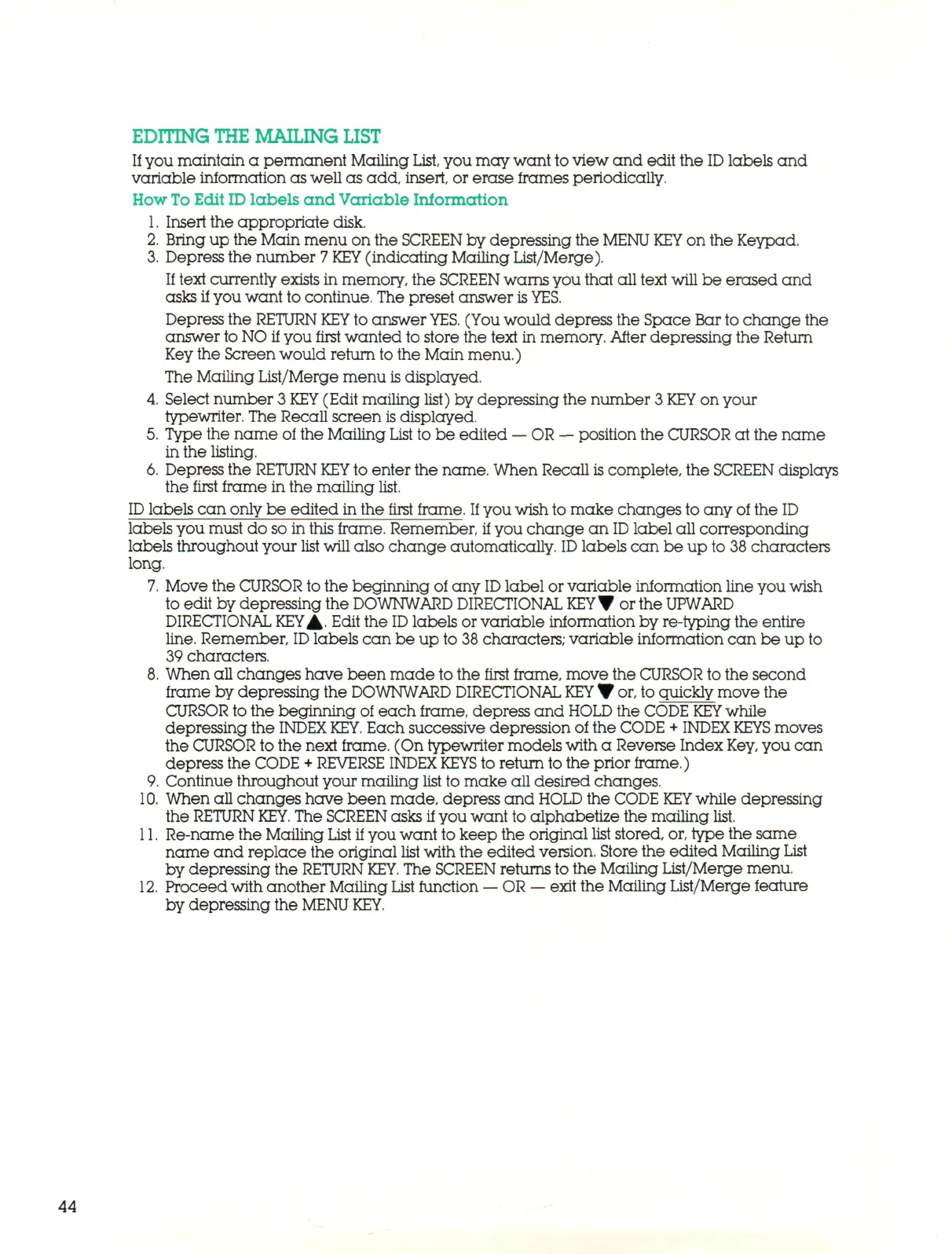 (Edit mailing list) by depressing the number 3
