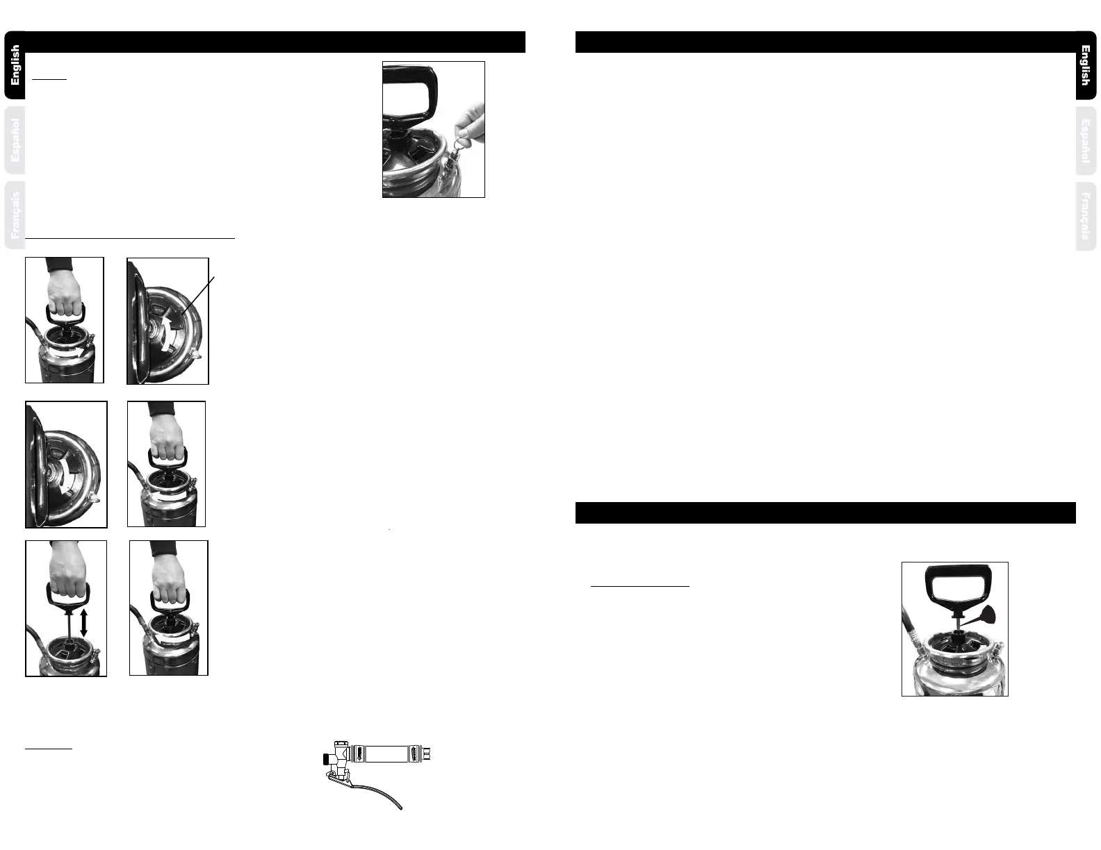 unlock handle. Pressurize the sprayer by pumping the