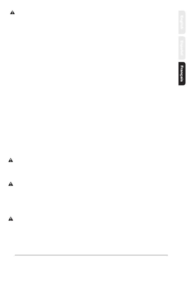 • Toujours examiner le exible et les raccords du exible avant chaque utilisation. Un exible endommagé ou un