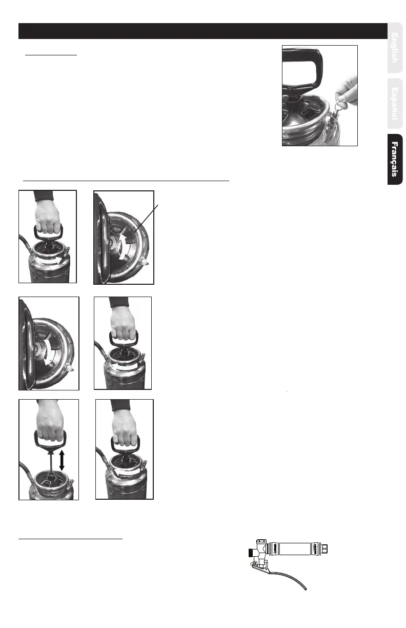 sur les fentes du col du réservoir et abaisser la pompe.