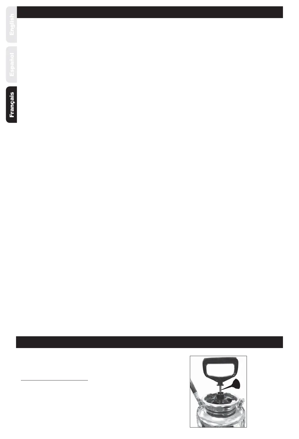 parois intérieures du pulvérisateur. Recommencer si nécessaire en le remplissant à chaque fois d’eau