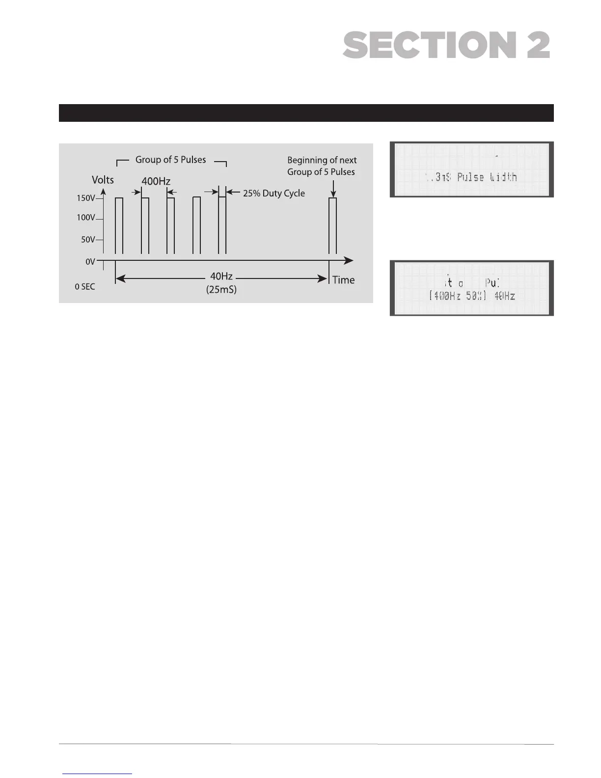 Therefore, settings are 150 volts for 5 pulses/burst. The