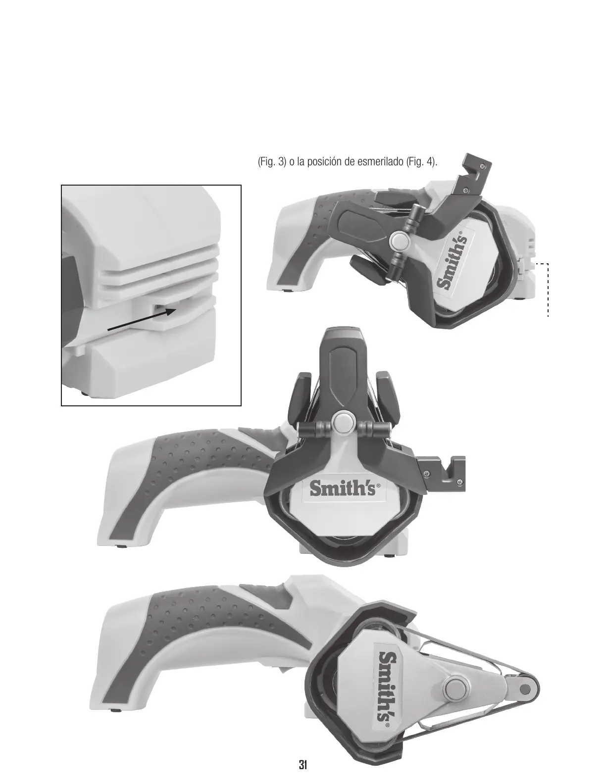 Gire después el casete a la posición de afilado (Fig. 3) o la posición de esmerilado (Fig. 4).