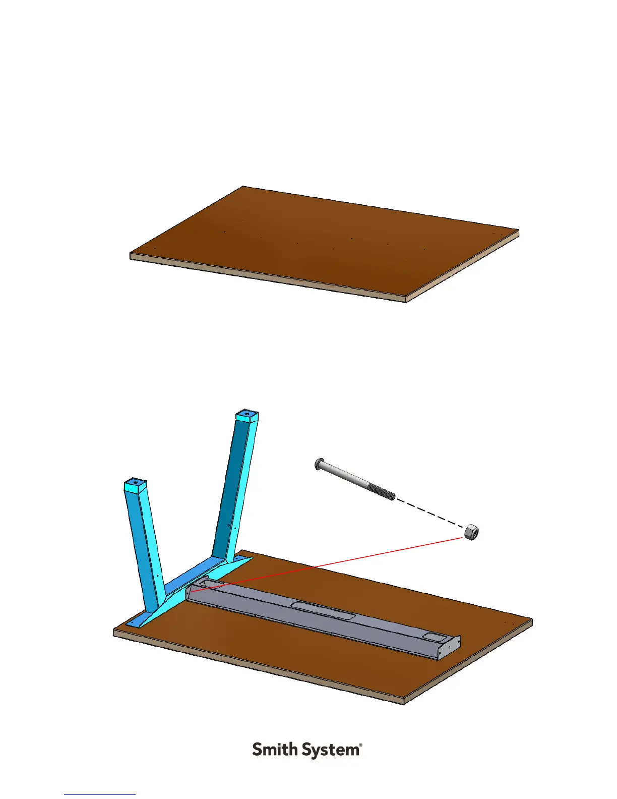 supplied ¼-20 x 3” bolts and ¼-20 locknuts. NOTE: 48” leg sets have 2 support channels.
